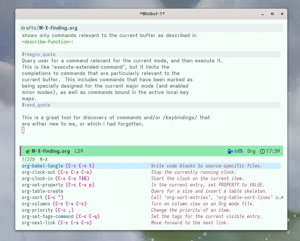 I was supposed to do some actual work, but rather chose to set up a custom-key-map, as one does as it is weekend. In the process I learned about a hither unknown command to me, tied to M-X.