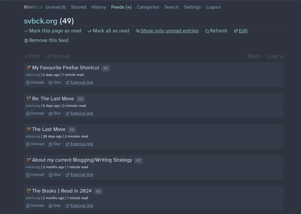 My latest addition though, is Miniflux.