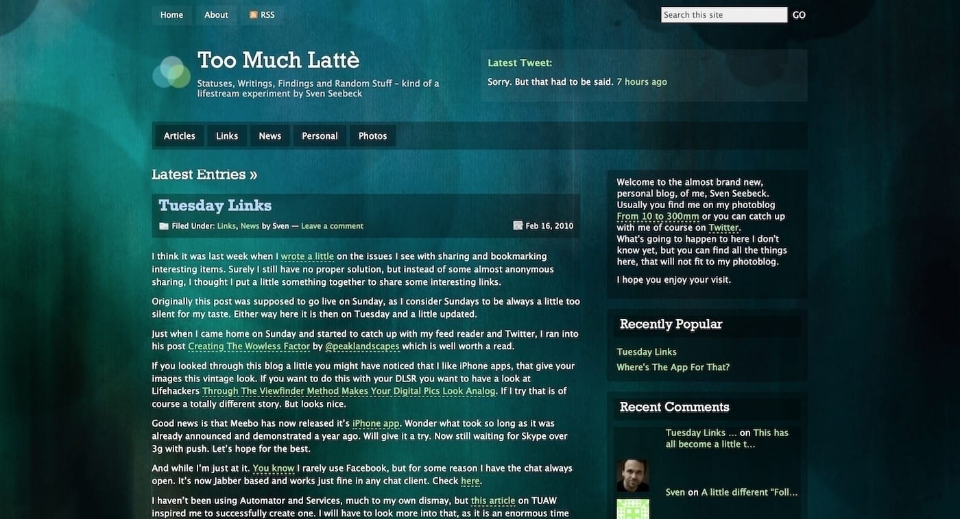 I launched in addition to my photoblog (From 10 to 300mm), my "personal" blog which ran under Too Much Latte for many years. Then I set up the whole thing from my phone while in the bus to a concert in Levi/Finland.
