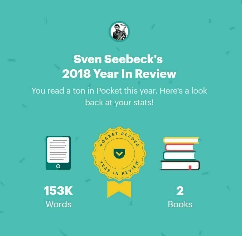 According to Pocket I read 153k words in the app, roughly being two books. This sounds about right and it comes with a nice graphic as well: