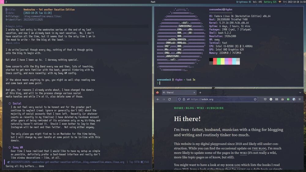 Some concerts with the Big Band every now and then, lots of teaching, started to get more familiar with the bash, general tinkering with my Emacs config, and more recently: with my Sway WM config.